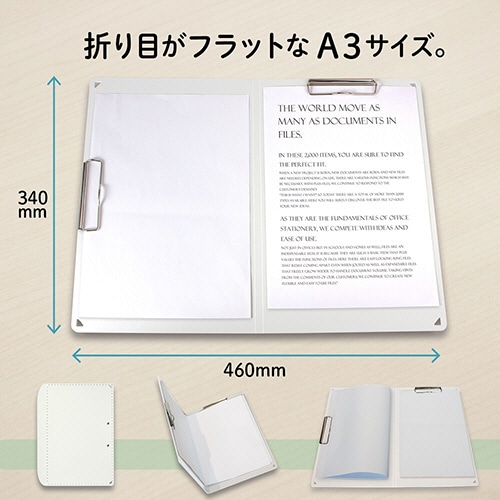●サイズも書き心地も秀逸。折りたためて便利なクリップボード、A3サイズで色はホワイト。
