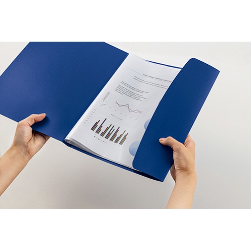 ●表紙についているフラップが書類の抜け落ちを防止します。ポケットがグシャっとなるのを防ぎ、「しおり」としても使用できます。