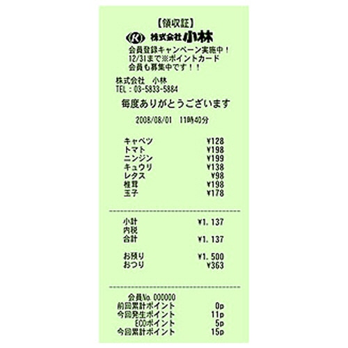 ●白レシートと比べて目立ちますので、引換券・順番券などに適しています。