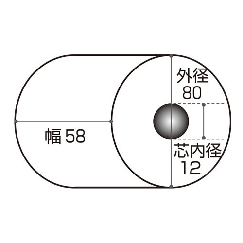 商品仕様 | ●保存期間の目安/ノーマル保存 ●色/緑 ●材質/国産紙 ●ロール紙サイズ/幅58×直径80mm ●ロール紙長さ/約63m ●穴内径/12mm ●厚み/約0.075mm |
