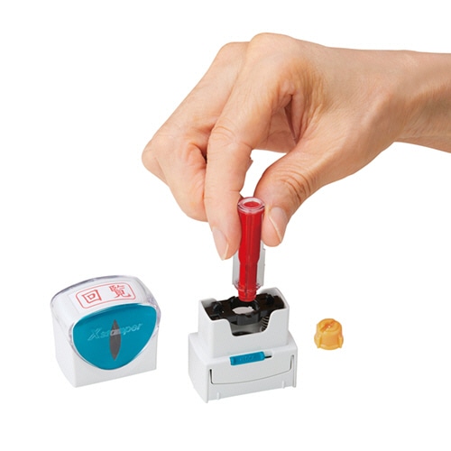 ●耐水性・耐光性に優れた油性顔料系インキを採用。使い終わりまでハッキリと濃い印影が続きます。本体窓からインキ残量が見えるので交換時期が一目で分かります。