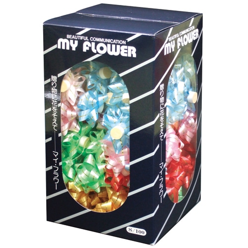 | 商品仕様 | ●色/赤、桃、緑、水、金 ●材質/ポリプロピレン ●その他仕様/●サイズ:本体:直径約50mm、リボン:幅12mm、箱:高さ270×幅150×奥行150mm ●各色20個 ●裏面シール付 |