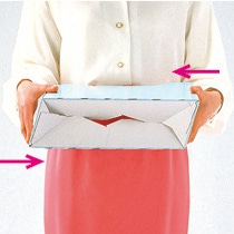 折りたたんだ状態から両端を押すと底の部分が起き上がる、ワンタッチ組立式です。