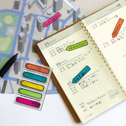 商品仕様 | ●寸法/12×44mm ●粘着側/短辺 ●色/オレンジ・アクア・イエロー・ブライトグリーン・ローズ ●粘着力/普通粘着 ●材質/基材:ポリエステルフィルム マットフィニッシュ(つや消し加工)、粘着材:アクリル系粘着材、ディスペンサー:再生PET ●重量/74g ●1パックあたり/20枚×5色×10シート ●シリーズ名/Post-it ●カラー/マルチカラー/多色 |