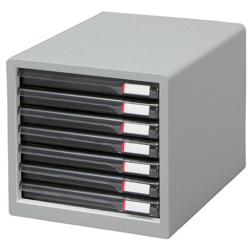 商品仕様 | ●サイズ/A4タテ ●段数仕様/スリム7段 ●外寸/W約265×D350×H258mm ●引出内寸/W230×D320×H25mm ●色/ライトグレー ●材質/本体:ハイインパクトスチロール、引出:スチロール樹脂 ●付属品/インデックスラベル ●その他仕様/●滑り止め用のゴム脚付き |