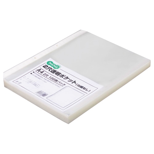 TANOSEE 2穴透明ポケット (台紙なし) A4タテ 1パック(100枚)