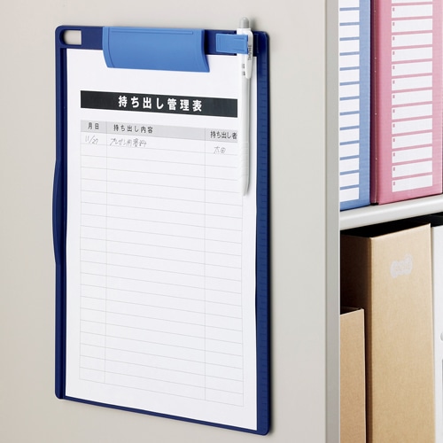 ●マグネットタイプのクリップボード、A4タテ、青×ネイビーブルーです。
