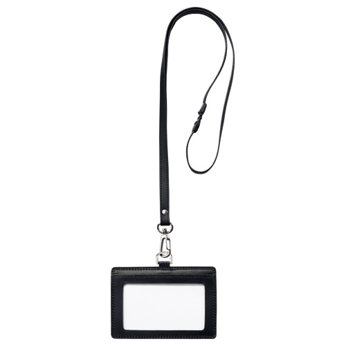 フロント 本革製ネームカードホルダー ヨコ型 ストラップ付 ブラック RLNH-E-BL 1個