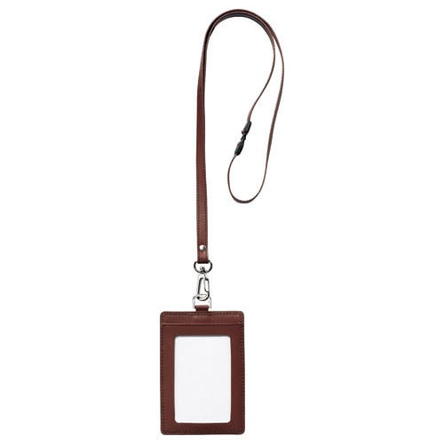 | 商品仕様 | ●色/ブラウン ●ケースサイズ/タテ112×ヨコ78mm ●適応カードサイズ/タテ85~91×ヨコ66mm ●窓サイズ/タテ80×ヨコ50mm ●ひもサイズ/10×885mm(吊り下げ金具除く) ●中紙/あり ●長さ調節/不可 ●材質/本体:牛革、金具:スチール、表示面:PVC、セーフティパーツ:ナイロン ●その他仕様/収納カード寸法厚み:2mm以内、裏面:ポケット付 ●ストラップ色/ブラウン(系) |