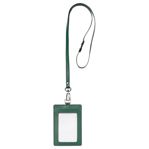 | 商品仕様 | ●色/グリーン ●ケースサイズ/タテ112×ヨコ78mm ●適応カードサイズ/タテ85~91×ヨコ66mm ●窓サイズ/タテ80×ヨコ50mm ●ひもサイズ/10×885mm(吊り下げ金具除く) ●中紙/あり ●長さ調節/不可 ●材質/本体:牛革、金具:スチール、表示面:PVC、セーフティパーツ:ナイロン ●その他仕様/収納カード寸法厚み:2mm以内、裏面:ポケット付 ●ストラップ色/グリーン(系) |