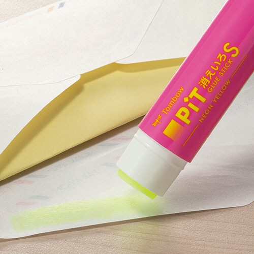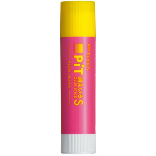 トンボ鉛筆 スティックのり 消えいろピット S ネオンイエロー 約10g (本体色:ピンク) PT-TCY81 1本