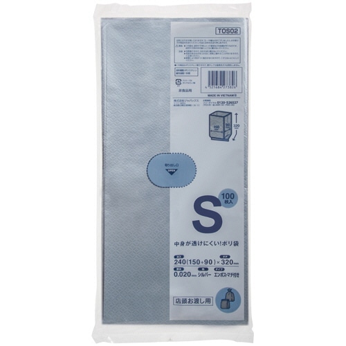 ジャパックス 中身が透けにくい!マチ付ポリ袋 シルバー S TOS02 1パック(100枚)