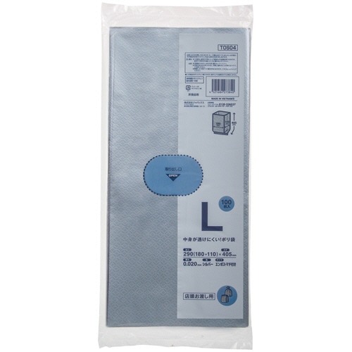 ジャパックス 中身が透けにくい!マチ付ポリ袋 シルバー L TOS04 1パック(100枚)