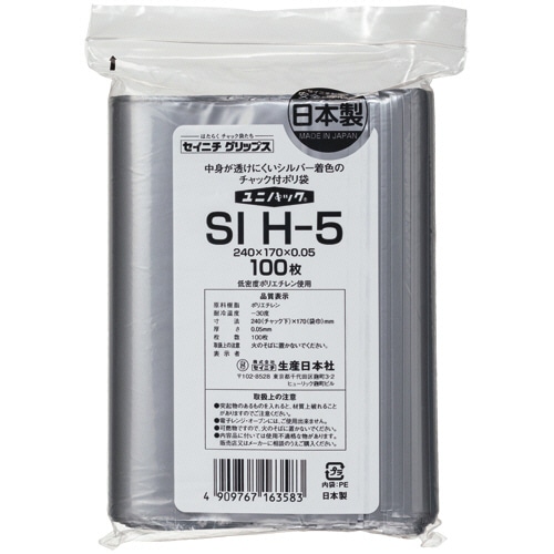 セイニチ ユニパック シルバー チャック付 ポリエチレン ヨコ170×タテ240×厚み0.05mm SI H-5 1パック(100枚)