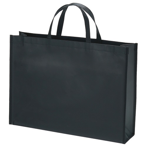 商品仕様 | ●サイズ/大 ●タイプ/不織布手提袋 ●色/黒 ●寸法/幅530×マチ幅120×高さ400mm ●耐荷重/10kg ●材質/ポリプロピレン不織布110g/m2、PPコーティング140g/sm ●その他仕様/●平紐(不織布) |