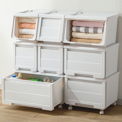 ●カバコシリーズの引出しタイプ。ホワイトの60cm幅深型サイズです。上に同幅のカバコを積重ねられます。