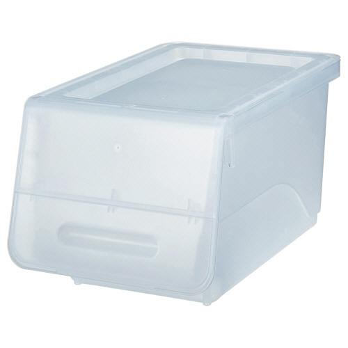 商品仕様 | ●サイズ/浅型スリム ●色/クリア ●外寸/W285×D460×H240mm ●内寸/W216×D336×H208mm ●耐荷重/4kg ●最大積み重ね段数/4段 ●材質/ポリプロピレン ●その他仕様/●製造国:日本 ●備考/※耐荷重は最大積み重ね時、総耐荷重です。 ※キャスター別売(キャスターは取り外し可能。キャスターを取り付けた場合、高さは43mm高くなります。) ●シリーズ名/squ+ |