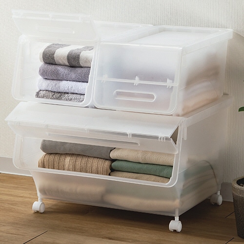 | 商品仕様 | ●サイズ/深型ワイド ●色/クリア ●外寸/W570×D460×H310mm ●内寸/W500×D336×H280mm ●耐荷重/8kg ●最大積み重ね段数/3段 ●材質/本体:ポリプロピレン、フラットバー:アルミ ●その他仕様/●製造国:日本 ●備考/※耐荷重は最大積み重ね時、総耐荷重です。 ※キャスター別売(キャスターは取り外し可能。キャスターを取り付けた場合、高さは43mm高くなります。) ●シリーズ名/squ+ |