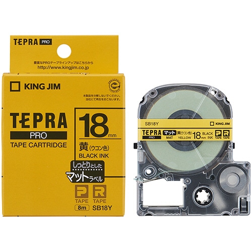キングジム テプラ PRO テープカートリッジ マットラベル 18mm 黄(ウコン色)/黒文字 SB18Y 1個