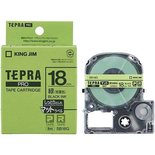 キングジム テプラ PRO テープカートリッジ マットラベル 18mm 緑(若葉色)/黒文字 SB18G 1個