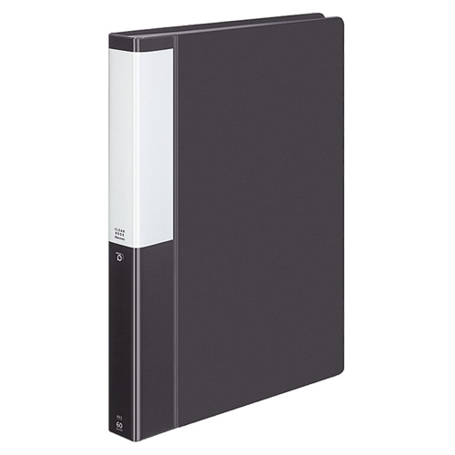 ●手当たりの良いダブルヒンジ仕様のクリヤーブック、A4タテ・60ポケットのダークグレーです。