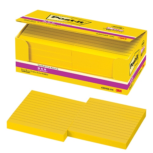 3M ポスト・イット エコノパック 強粘着ノート ラインノート 75×75mm ビビットイエロー 6301SS-YN 1パック(10冊)