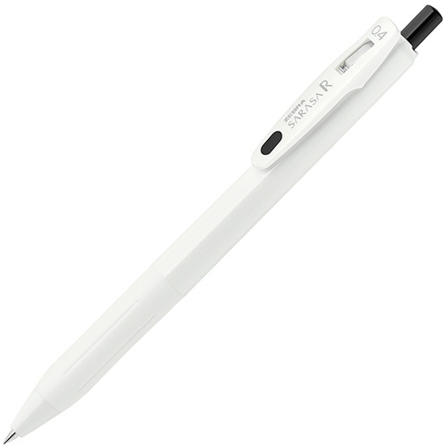 ●ボール径0.4mm、インク色は黒、軸色は白のゲルインクボールペン「サラサR」。