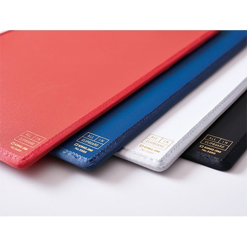 多機能ポケットが小物と書類の持ち運びに便利。カバー付きクリップボード。