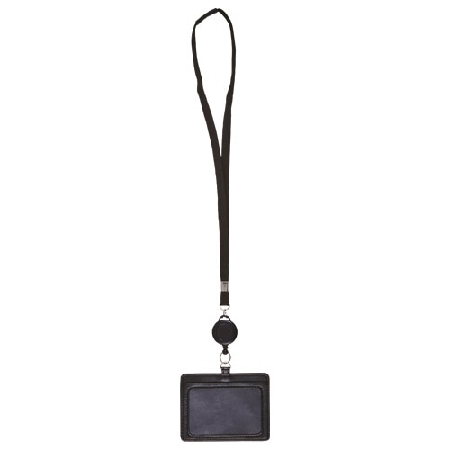 | 商品仕様 | ●色/ブラック ●ケースサイズ/タテ80×ヨコ105mm ●適応カードサイズ/タテ63×ヨコ95mm ●窓サイズ/タテ55×ヨコ85mm ●ひもサイズ/幅10mm×長さ約74cm ●リール伸縮/約60cm ●カード挿入方向/タテ入 ●安全パーツ/あり ●材質/本体:合皮、窓:PVC、裏生地:ポリエステル(抗菌) ●その他仕様/●厚さ:3mm ●ストラップ色/ブラック(系) |