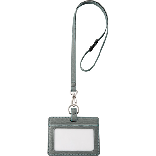 フロント 本革製IDネームカードホルダー ヨコ型 ストラップ付 グレー INCHD-G 1個