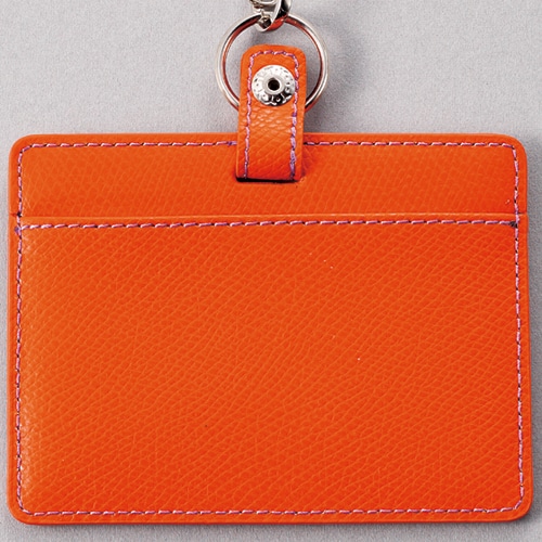 フロント 本革製IDネームカードホルダー ヨコ型 ストラップ付 オレンジ INCHD-O 1個