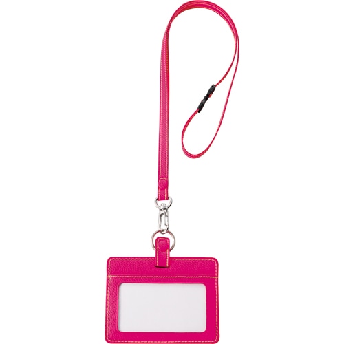 フロント 本革製IDネームカードホルダー ヨコ型 ストラップ付 ピンク INCHD-P 1個