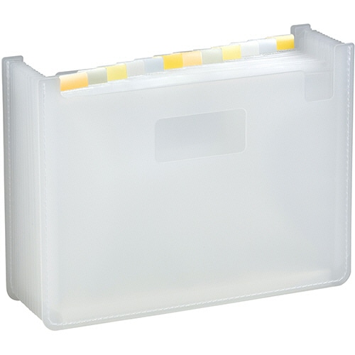 商品仕様 | ●サイズ/A4ヨコ ●寸法/W316×D20~330×H235mm ●ポケット数/13ポケット ●材質/表紙:PP(1.8mm厚)、ポケット:PP、糸:ナイロン、インデックス:紙 ●付属品/インデックス ●その他仕様/●本体色:ホワイト ●シリーズ名/セマック |