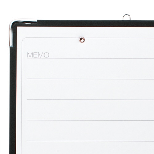 | 商品仕様 | ●サイズ/B5ヨコ ●色/ブラック ●寸法/タテ207×ヨコ282mm ●収容枚数/コピー用紙約40枚 ●材質/表面:紙クロス貼り、裏面:紙、角金具付 ●芯材/古紙パルプ配合 ●サ イ ズ/B5 ●カラー/ブラック(系) |