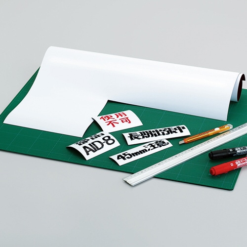 商品仕様 | ●寸法/タテ500×ヨコ600mm ●厚さ/0.8mm ●ツヤ/なし ●色/白 ●材質/表面:PVC-P、裏面:マグネットシート ●備考/※油性マーカーで書いた文字は消去できません。 ※ホワイトボード用マーカーは書き消しともにできません。 |