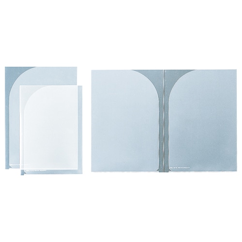 ●2つ折り、両面ポケット式の透明ホルダーです。