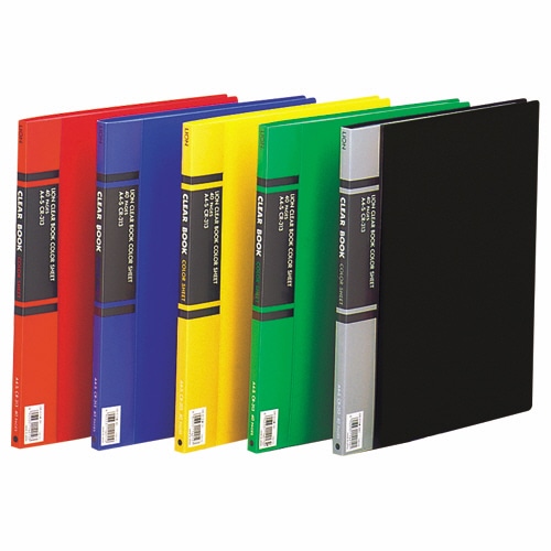 ライオン事務器 クリアーブック A4タテ 40ポケット 背幅27mm 青 カラー台紙付 CR-323 1冊