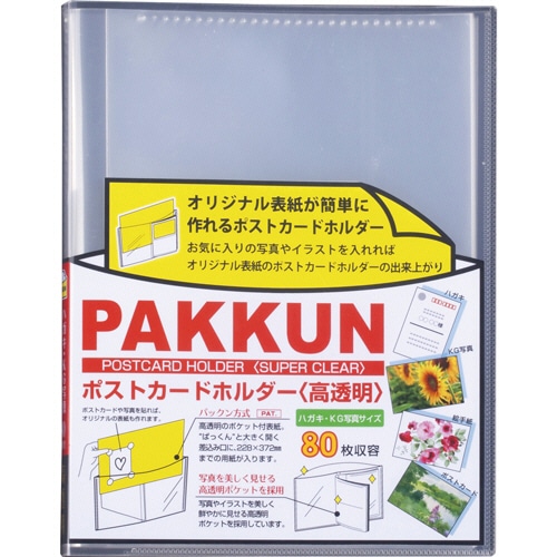 セキセイ パックン ポストカードホルダー<高透明> 80ポケット クリア PKH-7482-90 1冊