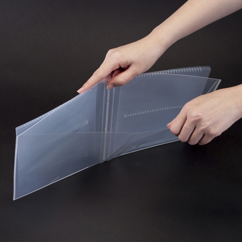 商品仕様 | ●色/クリア ●寸法/W181×D17×H235mm ●収容ハガキ枚数/2段80枚(ポストカード・ハガキ・KG写真・絵手紙サイズ) ●材質/表紙:再生PP(0.5mm厚)、表紙ポケット:PP(0.15mm厚)、ポケット:OPP(50ミクロン) ●その他仕様/●溶着式ポケット ●最大収容サイズ:107×155mm ●表紙ポケット最大収容サイズ:228×372mm |