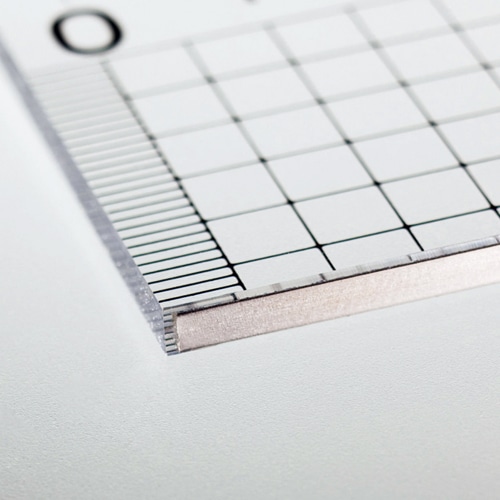 見やすい定規目盛と方眼線も入ったカッティング兼用定規です。