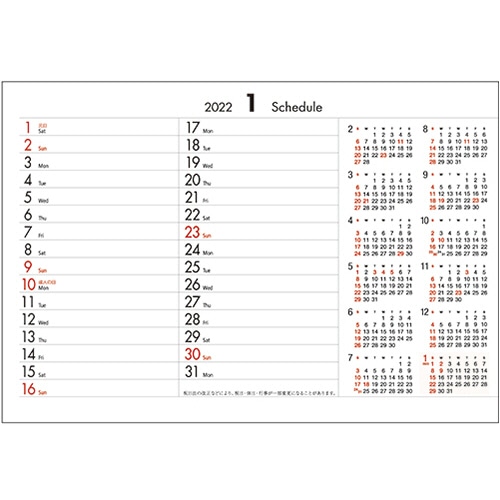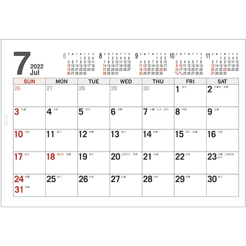 | 商品仕様 | ●タイプ/卓上カレンダー ●寸法/タテ155×ヨコ182mm ●枚数/14枚(表紙共、シール1枚) ●材質/マットコート紙 ●重量/100g ●付属品/シール ●その他仕様/●表示:六曜 ●製本:ツインリング製本 ●生産国:日本 ●備考/※14枚目はシール ※1冊ずつOPP袋に入っています。 |
