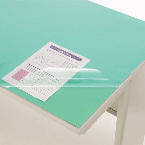ライオン事務器 デスクマット PVC製 光沢仕上 ダブル(グリーンマット付) 910×625×0.8mm No.7-PE 1枚