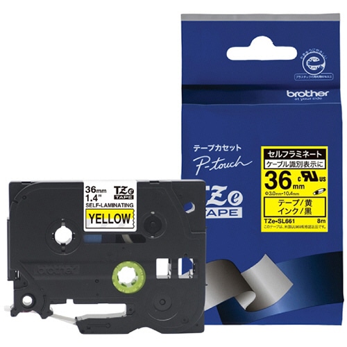 ブラザー ピータッチ セルフラミネートテープ ケーブルマーキング 36mm 黄/黒文字 TZE-SL661 1個