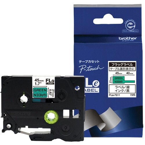 ブラザー ピータッチ フラッグラベル ケーブルマーキング 24mm(ラベルサイズ45×21mm) 緑/黒文字 FLE-7511 1個(72枚)