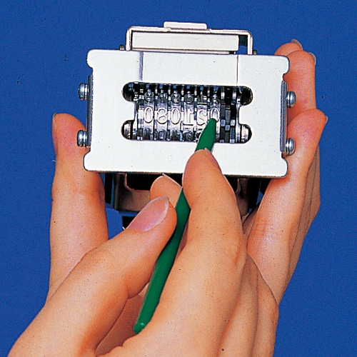 商品仕様 | ●桁数/6桁 ●様式/7様式 ●字体/E字体 ●対応変換目盛/0、1、2、3、4、6、12 ●寸法/W65×D50×H140mm ●重量/360g ●その他仕様/●C型 ●全桁自動送り ●付属品:メタルインキ1個・ステッキ1本 |