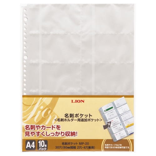 ライオン事務器 名刺ポケット A4タテ 2・4・30穴 両面20ポケット ヨコ入れ MP-20 1パック(10枚)