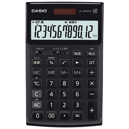 カシオ 本格実務電卓 12桁 ジャストタイプ ブラック JS-20WKA-BK-N 1台