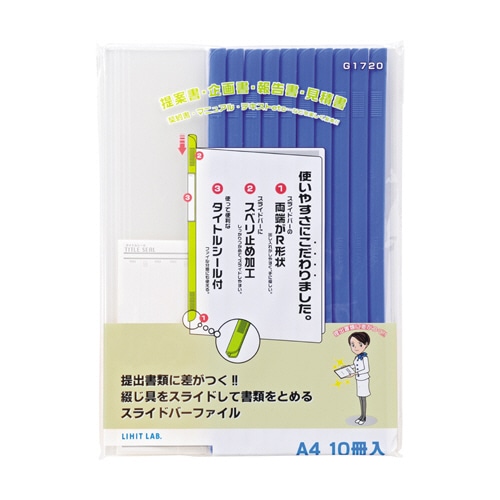 リヒトラブ リクエスト スライドバーファイル A4タテ 20枚収容 青 G1720-8 1パック(10冊)