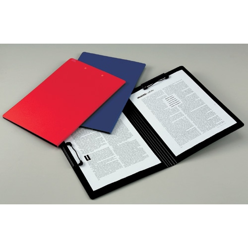 ●ダブルクリップで書類を2か所に分けて収納できるクリップファイル、A4サイズのネイビーブルーです。