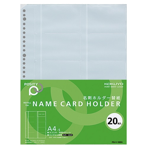 コクヨ 名刺ホルダー替紙 (POSITY) A4タテ 30穴 両面20ポケット ヨコ入れ P3メイ-395 1パック(20枚)